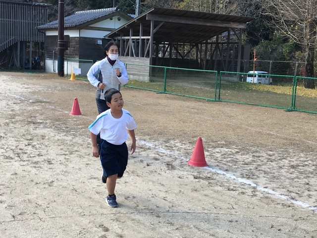 11月26日(金) 2年ぶりに『校内持久走大会』を開催しました.16日実施した試走時と比べ、気温も低く、風も強い中での本番となりましたが、試走時以上に力強い走りを見せてくれ、全児童生徒が走り切りました。終了後は、結果を喜ぶ子・悔しがる子・ホッと安心する子・・・・様々でしたが、結果だけでなく、これまでの取組を自分の力として次へのステップとして活かしてほしいですね。お疲れさでした。