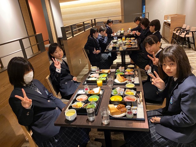 トップ 活動実績 11月10日(火) 6年生修学旅行 2日目スタート❗️ 11月10日(火) 6年生修学旅行 2日目スタート❗️ 6時半起床でしたが、どの班も6時には起き、準備もバッチリできていましたよ。 本日の朝食は、洋食。オシャレな朝食からのスタート‼︎ しっかり食べて、いざ出陣‼️ 学園長あいさつ 学園紹介 学園だより 学園沿革 教育目標 活動実績
